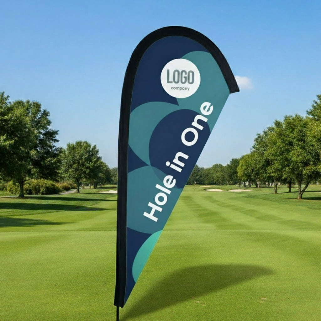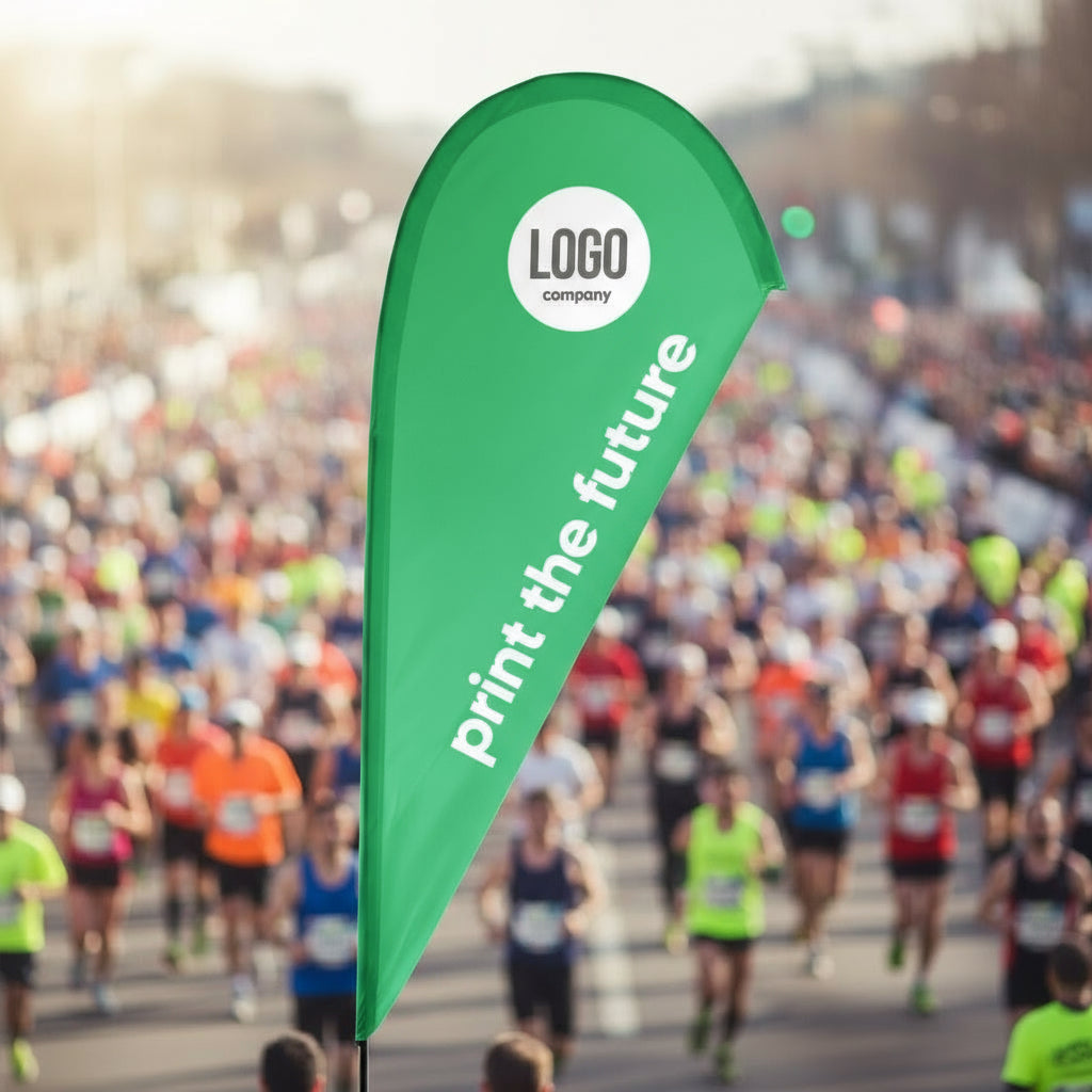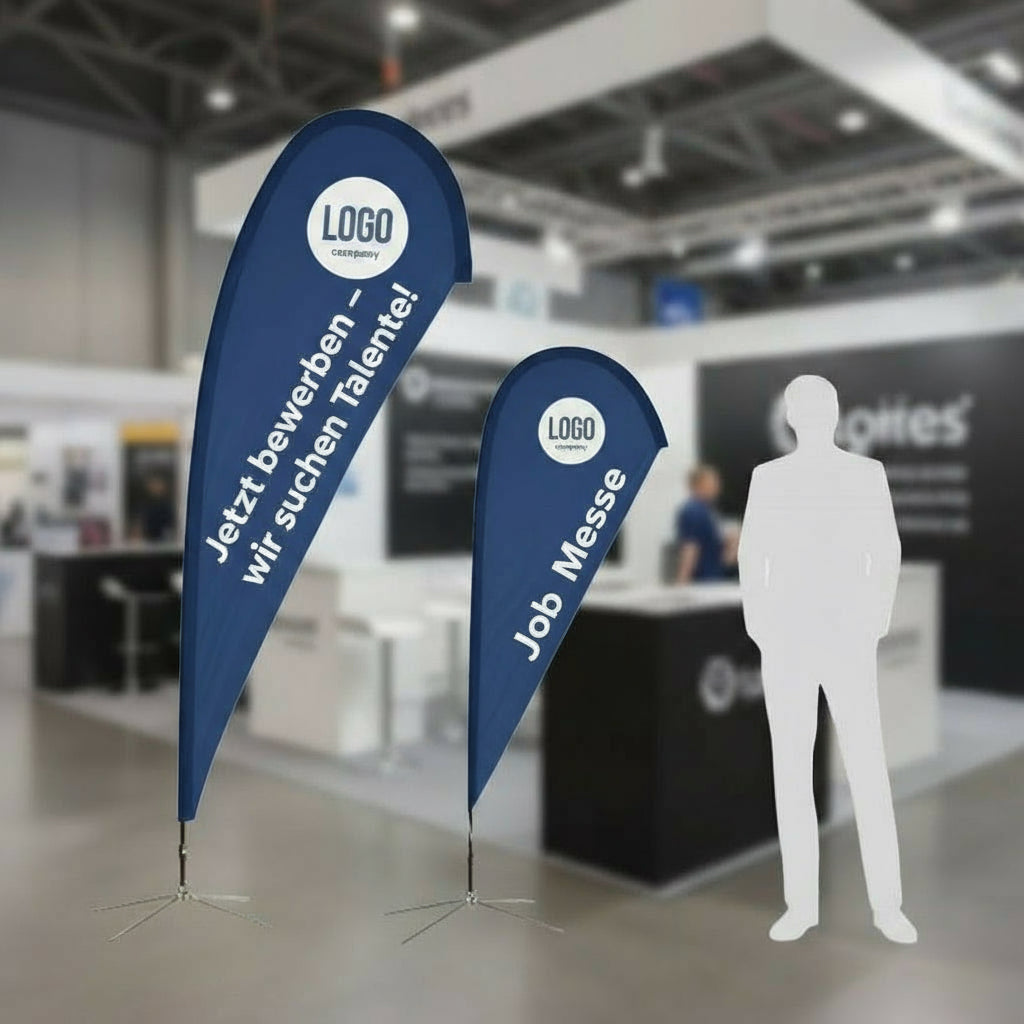In wenigen Minuten – Stange zusammenstecken, Flagge einziehen, Standfuß platzieren.