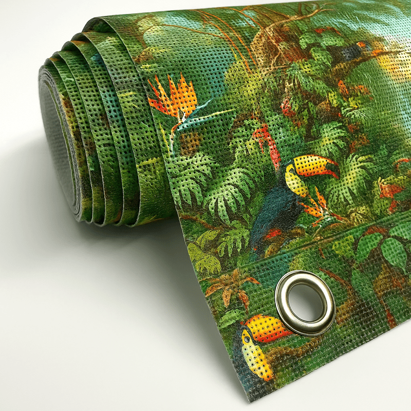 • Material: Mesh PVC 300 g/m² – luftdurchlässiges Lochgewebe